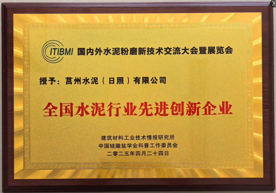 莒州水泥(日照)有限公司榮獲“全國水泥行業先進創新企業”稱號